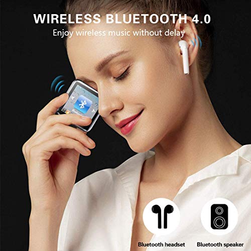 - ♬【FUNCIÓN BLUETOOTH 4.0】Bluetooth 4.0 admite una conexión más fácil y rápida con auriculares y altavoces Bluetooth; Reduce el consumo de energía del producto, manténgase alejado de los cables (Consejos: el reproductor de MP3 es un transmisor Bluetooth, no un receptor, no se puede emparejar con teléfonos).