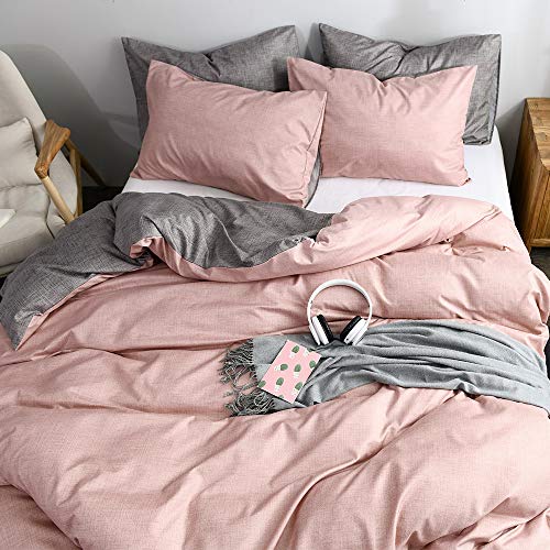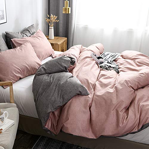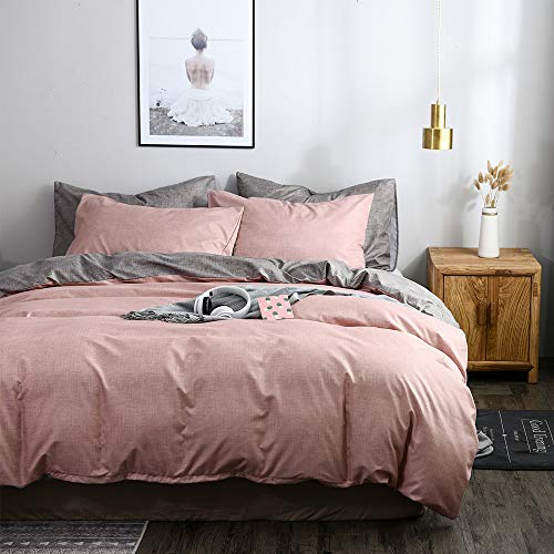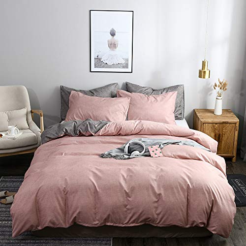 OLDBIAO Ropa de cama para mujer de 200 x 220 cm, funda nórdica + funda de almohada de 80 x 80 cm, microfibra, funda de almohada, gris, rosa envejecido, ropa de cama doble