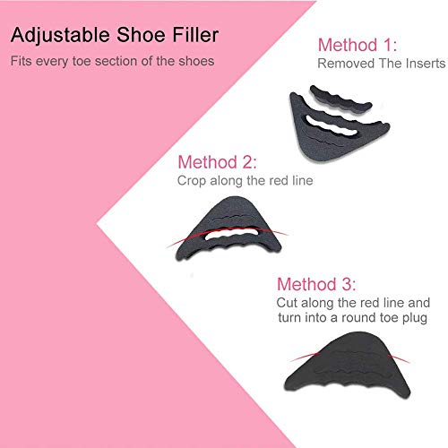 Relleno de zapatos, relleno de puntera e insertos de zapatos para hacer que los zapatos grandes queden bien, relleno de zapatos ajustable Inserciones,zapatos de salón, zapatos planos (Negro)