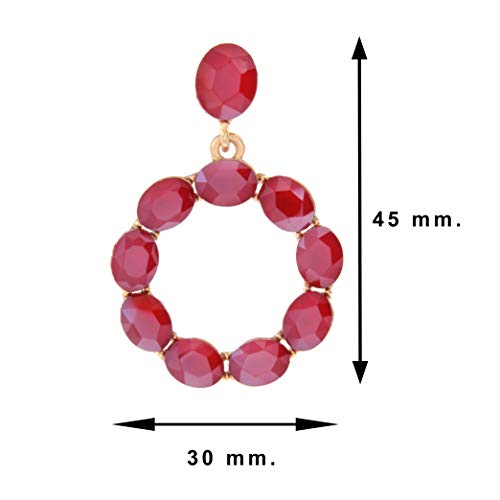 TEMPUS FUGIT. Pendientes para mujer largos Antialérgicos Aro chapados en Oro con cristales de colores brillantes