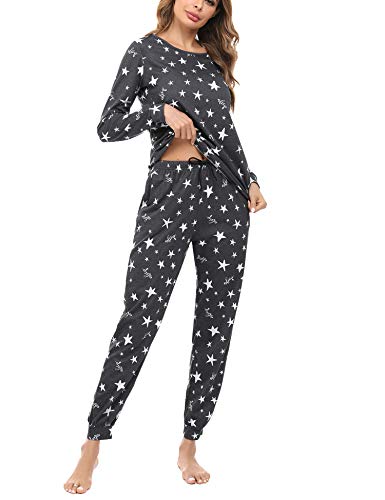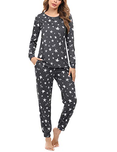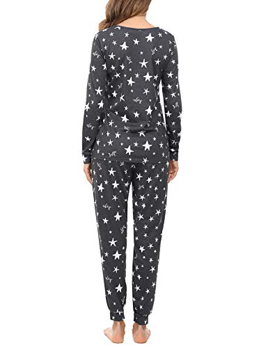 Irevial Pijamas para Mujer,Elegante Pijamas de Estampado de diseño Estrella, Mangas Larga Camiseta y Pantalon Largo 2 Piezas Talla Grande Invierno