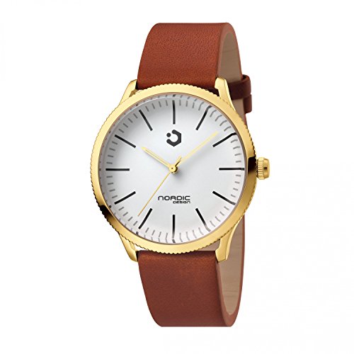Nordic Diseño Hamar V Pulsera: Piel Rojo marrón de 20 mm, Color: Oro Acero Inoxidable