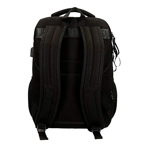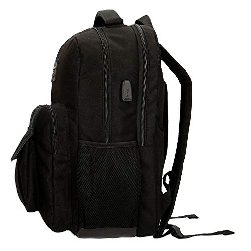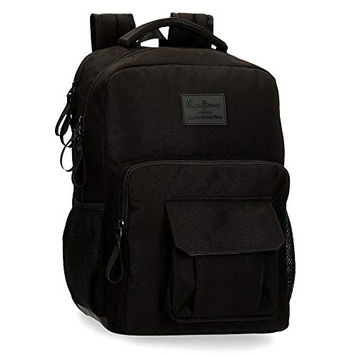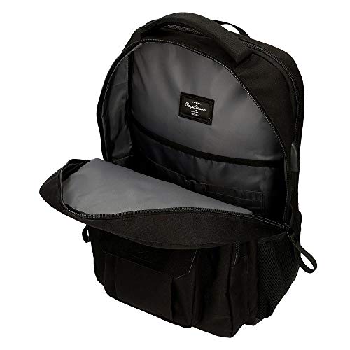 Pepe Jeans Denton Mochila Doble Compartimento Adaptable para Portátil 15,6" Negro 31x44x15 cms Poliéster Reciclado 20.46L