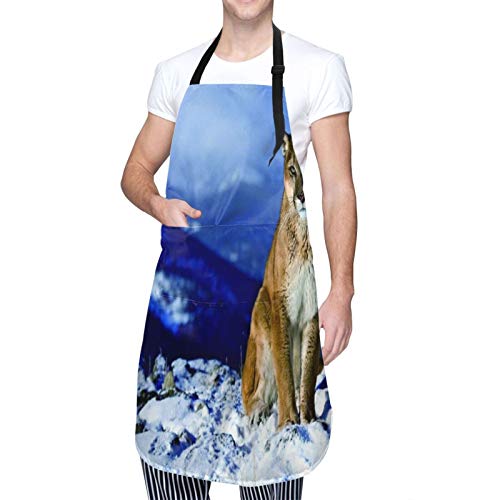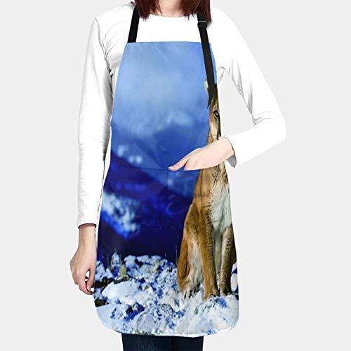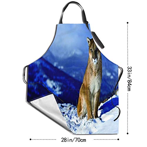 DAHALLAR Ajustable Colgante de Cuello Personalizado Delantal Impermeable,Puma en la montaña nevada,Babero de Cocina Vestido para Hombres Mujeres con 2 Bolsillos Centrales