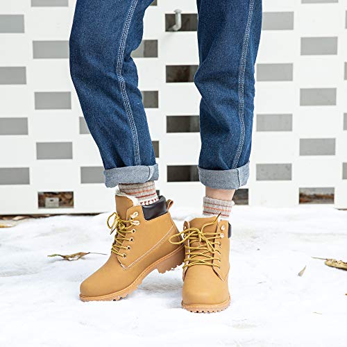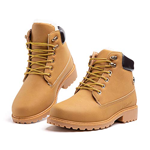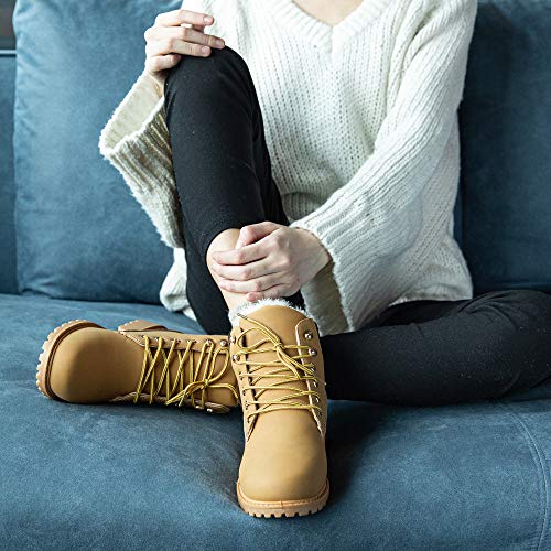 SAGUARO® Invierno Mujer Botas de Nieve Cuero Calientes Fur Botines Plataforma Bota Boots Ocasional Impermeable Anti Deslizante Zapatos, Amarillo 39