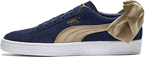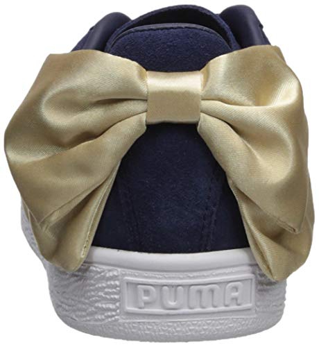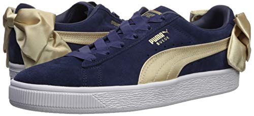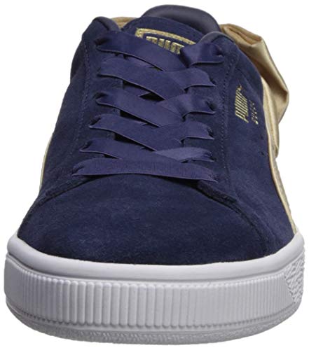 PUMA Women's Suede Bow Varsity Sneaker, Peacoat-Metallic Gold, 8 M US