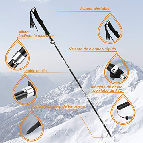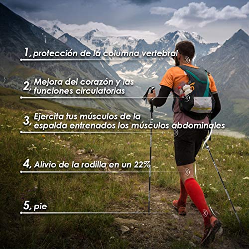 - ⛺【Estable y Duradero】: Este bastón de Trekking Puede reducir la presión sobre los hombros y los codos. La punta está hecha de acero de tungsteno, Buen agarre en terrenos rocosos casi desiguales, ya que puede sujetarse en casi todas las superficies y es muy resistente al desgaste.