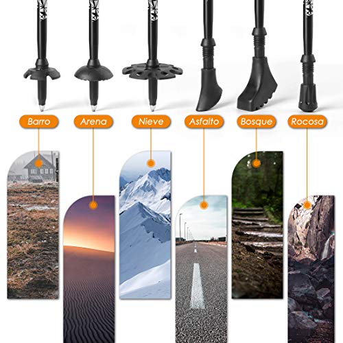 - ⛺【Aplicable a la mayoría de los terrenos】: la punta está hecha de acero de tungsteno y es especialmente adecuada para la mayoría de los terrenos. La robusta punta de goma suprime el ruido en pisos duros y evita el desgaste de la punta de metal. Varias tablas son adecuadas para arena, barro y nieve para evitar que los bastones de trekking caigan en la nieve o caigan en las grietas.