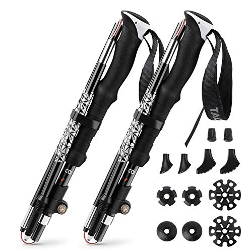 TAOCOCO 2pcs Bastón de Senderismo Plegable 7075 Bastón de Trekking de Aluminio, Bastón de Trekking Plegable Ajustable Ultraligero/Agarre EVA/Viajes de Mochilero