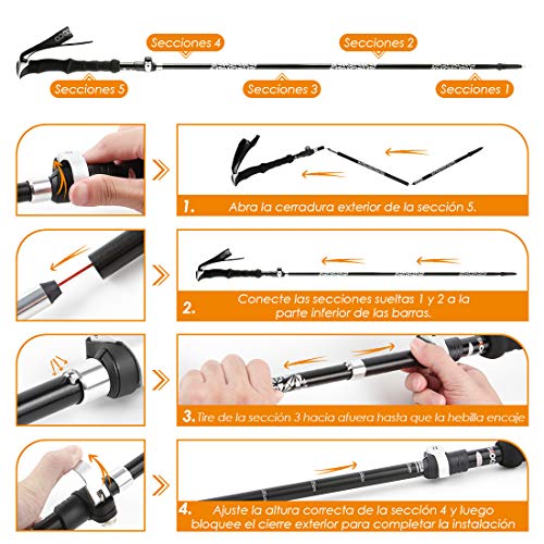 - ⛺【Ergonómico】: un mango ergonómico hecho de espuma EVA de alta densidad que se adapta a la forma de la mano. La espuma también absorbe el sudor de tus manos y te ayuda a mantener tus bastones más apretados. Pulsera ajustable transpirable para mayor seguridad y soporte en la posición de la mano.