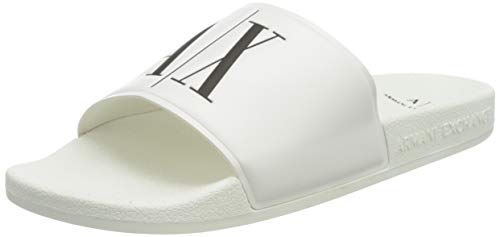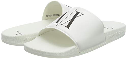 Armani Exchange AX Icon Pool Slides, Chanclas Hombre, Blanco (Op.White+Black Logo 00152), 42 EU