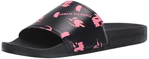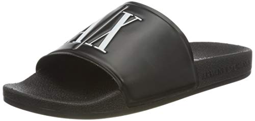 Armani Exchange AX Icon Pool Slides, Chanclas Mujer, Negro (Black+White Logo 00002), 41 EU