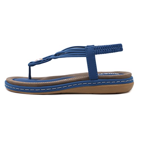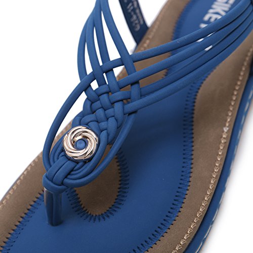 JIANKE Sandalias Mujer Verano Planas Bohemia Sandalias Cómodo Casual Zapatos de Playa Azul 39 EU