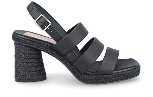 Gaimo - Sandalia Tacón Esparto Corin Piel Negro - Negro, 35