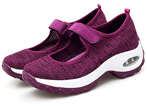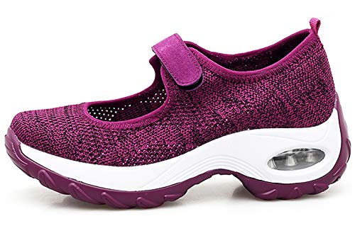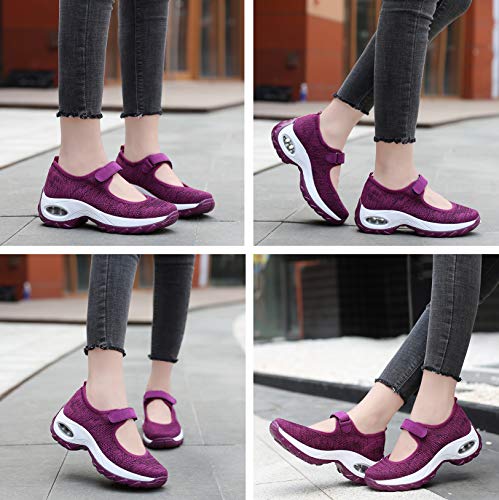 Vorgelen Sandalias Deportivas de Mujer Malla Ligero Plataforma Zapatillas Mary Jane Casual Cómodas Respirable Sneakers para Deportes Fitness Correr Trabajar