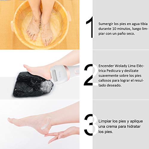 - 【EFICIENZA & SIN DOLOR】Wolady Lima Eléctrica Pedicura Eléctrico son más seguros y más potentes que el rollo de metal manual más eficiente e indoloro. Le ofrece una experiencia profesional de pedicura perfecta para el tratamiento de los pies. Los nuevos pies vienen con su uso cada vez. GARANTÍA DE 2 AÑOS.