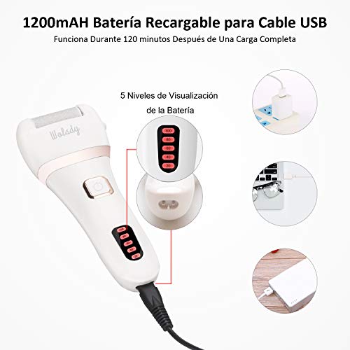 Lima Eléctrica Pedicura Eléctrico Lima Pies Profesional Recargable Wolady IPX7 Impermeable Eliminar Callos Pies Durezas Pedicura Pies Cuidado Lima 3 Recambios 5 Niveles Batería 1200MAH 2 Velocidades