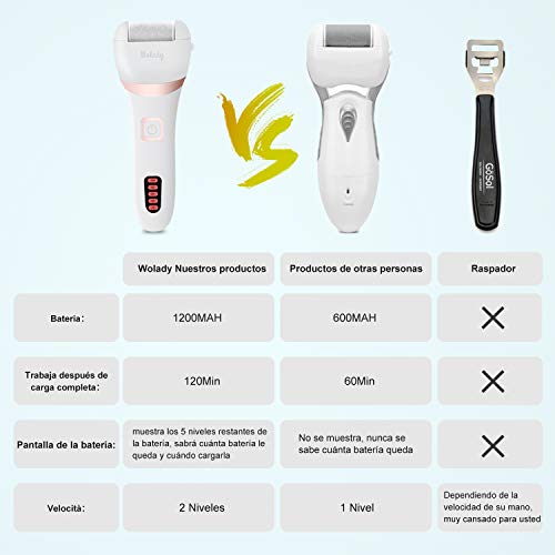 - 【3 CABEZAS CON DIFERENTES ROLLOS】Wolady Lima Eléctrica Recargable para pies que gira 360 grados para obtener resultados rápidos en pieles gruesas y callosas. Con nuestro kit de extracción de callos eléctricos, cuide sus pies con una pedicura similar a un spa desde la comodidad de su hogar. Cumple con todas tus necesidades de extirpación de callos.