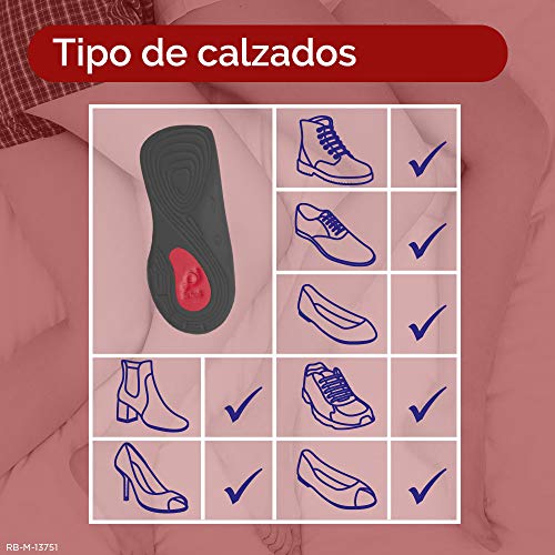 - Su gel dual es efectivo absorbiendo los pequeños impactos y ayuda a reducir la excesiva presión producida al caminar o realizar actividades diarias