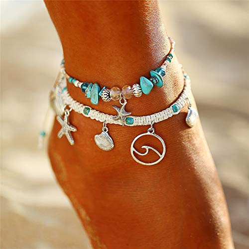 Yakiki Tobilleras Vintage con diseño de Estrella de mar y Tortuga para Mujer (D)