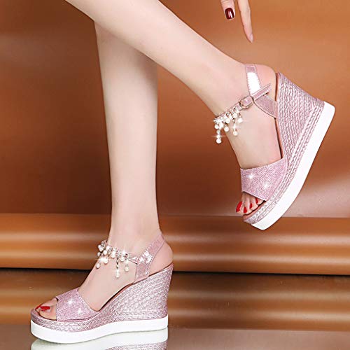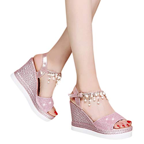Sandalias Mujer Verano 2019 Zapatos de Plataforma Mujer Cuña Zapatos de Boca de Pescado Playa Zapatillas Sandalias de Punta Abierta Casual Fiesta Bohemia Tacones Altos Sandalias vpass