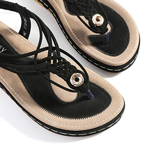 gracosy Sandalias Planas Verano Mujer Estilo Bohemia Zapatos de Dedo Sandalias Talla Grande Cinta Casuales Playa Chanclas Romanas de Mujer 2020 Azul Negro Moda