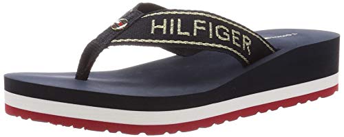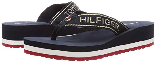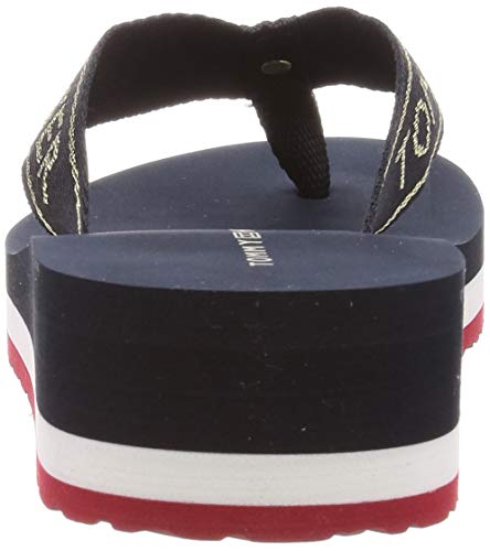 Tommy Hilfiger Metallic Mid Wedge Beach Sandal, Sandalias con Punta Abierta Mujer, Rojo (RWB 0kp), 37 EU