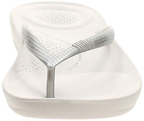 FitFlop Iqushion Ergonomic Flip Flops, Chanclas Mujer, Silver (Silver 011), 37 EU