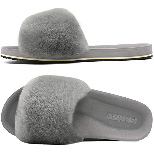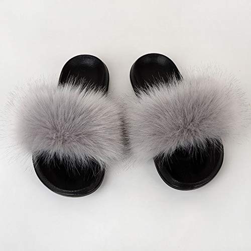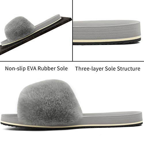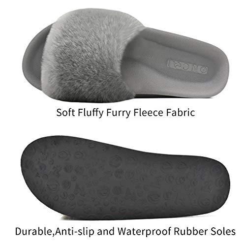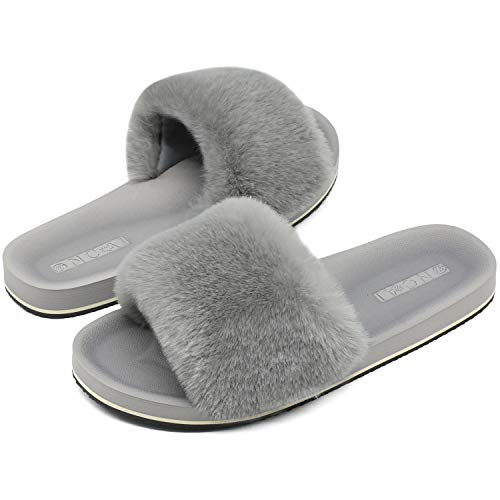 Zapatillas de Casa Mujer Cómodos Plano Felpa Pantuflas Antideslizante Punta Abierta Mullido Dama Sandalias de Diapositivas Interior/Exterior Zapatos Gris Talla 39