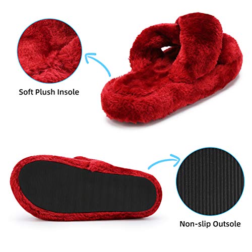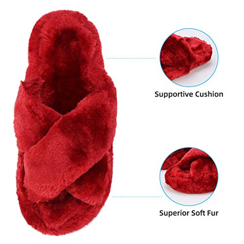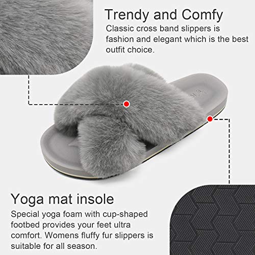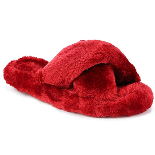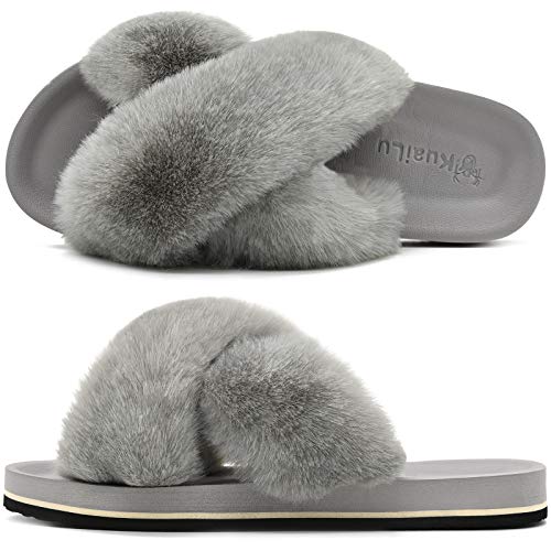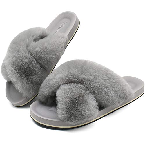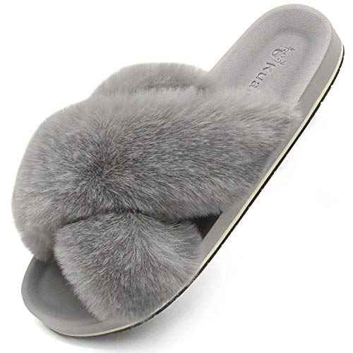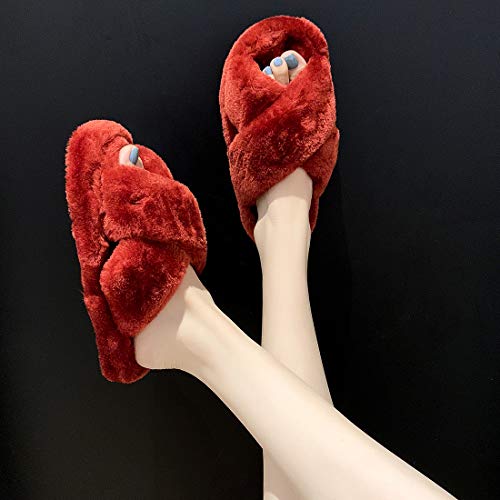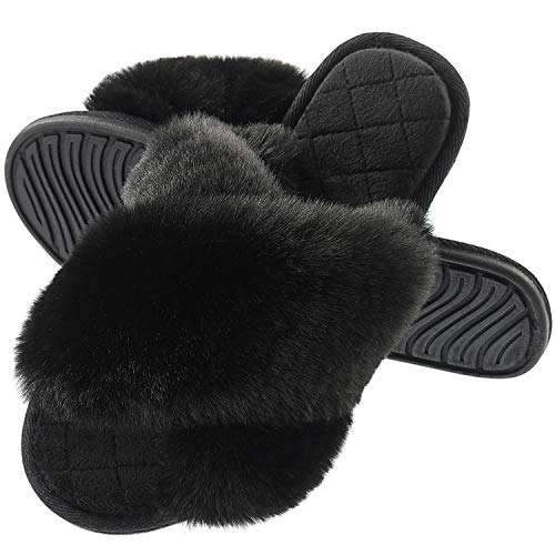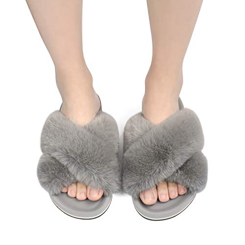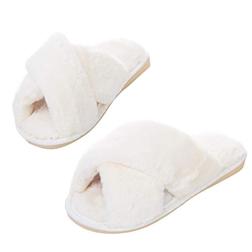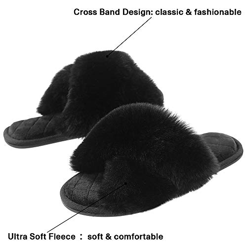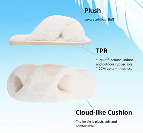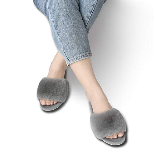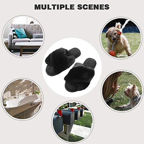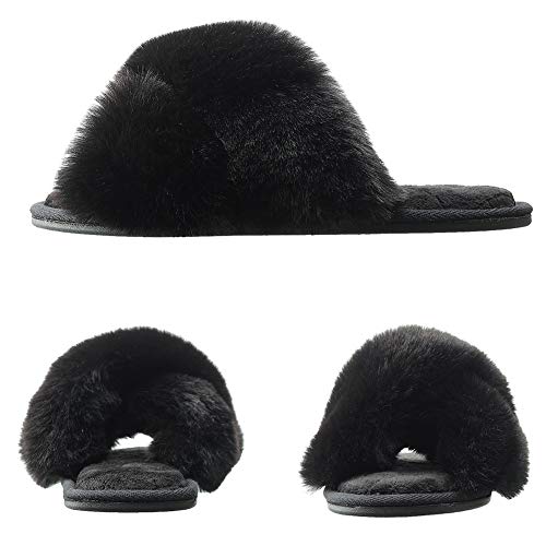 - 【Pantuflas peludas para todas las estaciones】 El diseño de punta abierta y banda cruzada hacen que estas pantuflas peludas sean transpirables y prácticas, no solo son ideales para el frío invierno, sino también para los meses cálidos en verano.