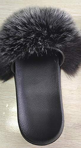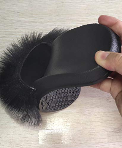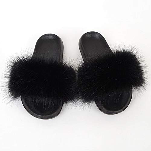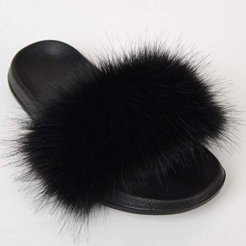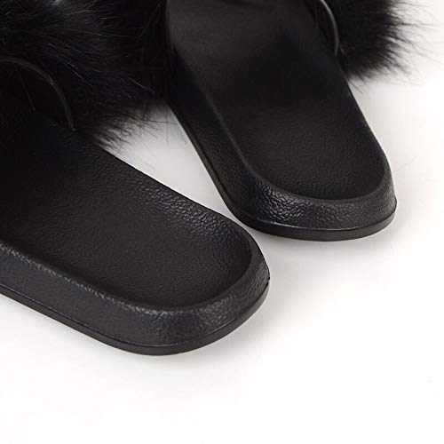 Zapatos caseros zapatillas de interior Zapatillas de piel falsa de zorro de las mujeres más el tamaño de verano abiertas con punta de las sandalias de piel suaves casuales negros peludos sandalias y z