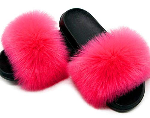 - 【Zapatos de deslizamiento peludos y encantadores】 Parte superior de piel sintética suave y peluda más un tono especial, con adornos de brillo de moda perfectos para niñas o mujeres que aman los toboganes elegantes y la sensación cálida.