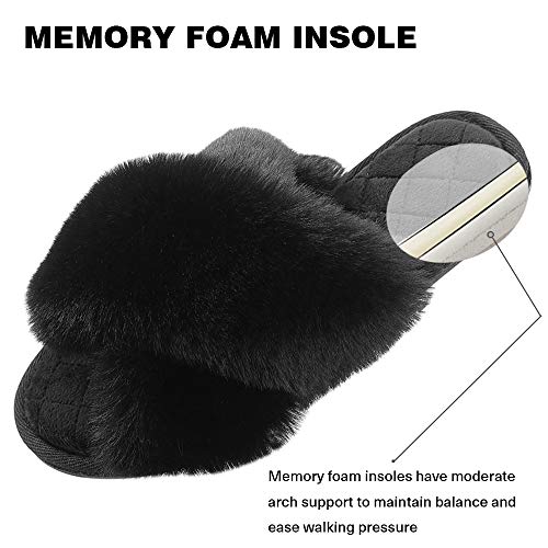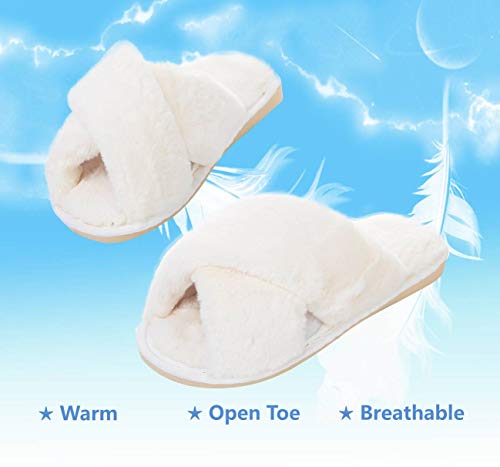 - 【Sandalias extremadamente cómodas】 ¡Estas zapatillas de casa son cómodas y cómodas! Cuentan con un diseño de punta abierta y una tela de felpa difusa que las hace cálidas, suaves y relajantes.