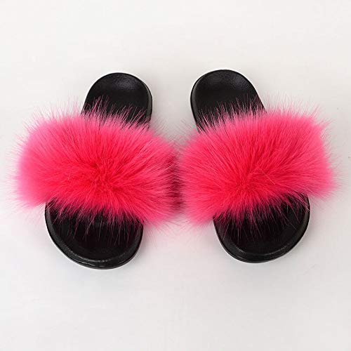 Sandalias Planas de Piel sintética esponjosa,Deslizador Unisex Peludo de Punta Abierta Suave y Acogedor Felpa Interior al Aire Libre Deslizamiento en Zapatos,44-45,Rose Red