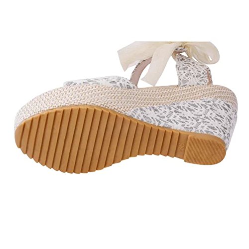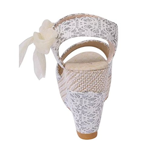 Minetom Sandalias con Cuña Mujer Verano Dulce Encaje Arco Peep Toe Zapatos Chancletas Zapatillas Playa Boda Blanco EU 37