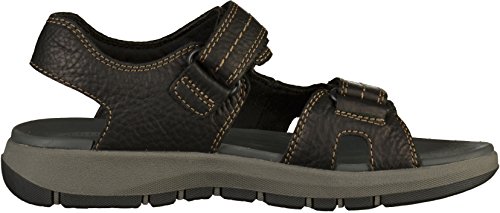 Clarks Brixby Shore, Sandalia con Pulsera Hombre, Negro (Black Leather-), 43 EU