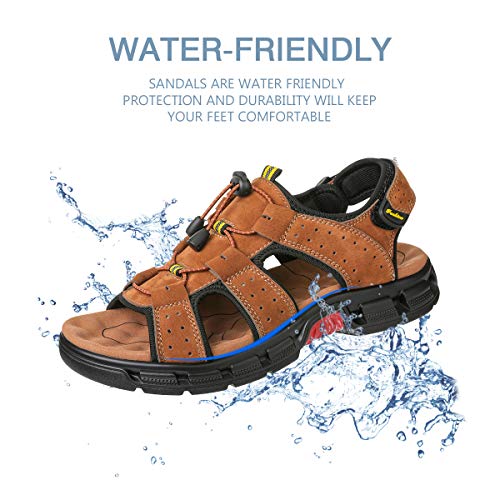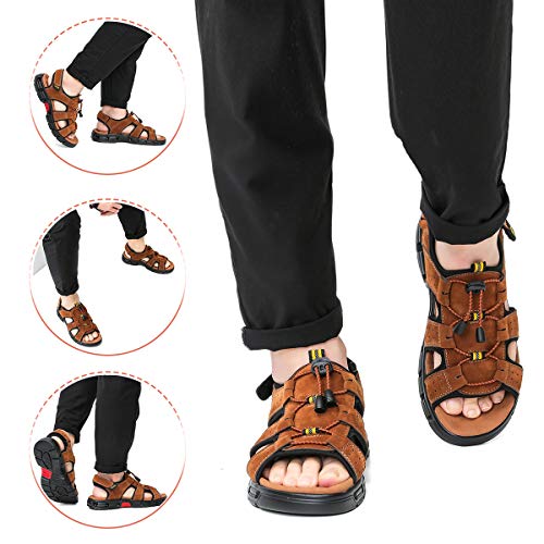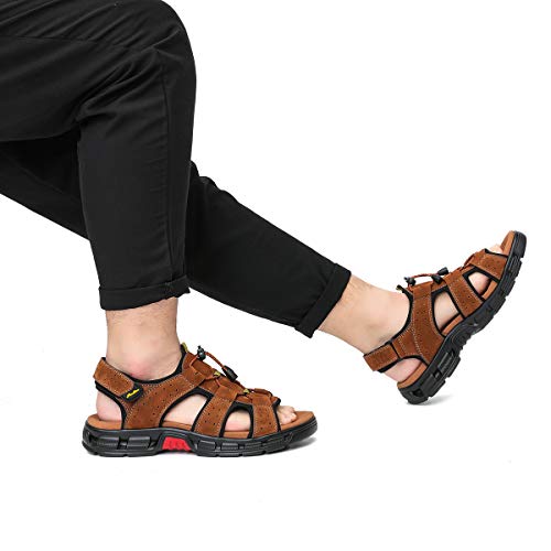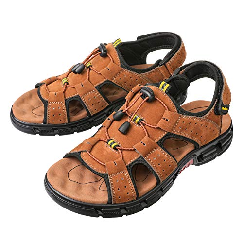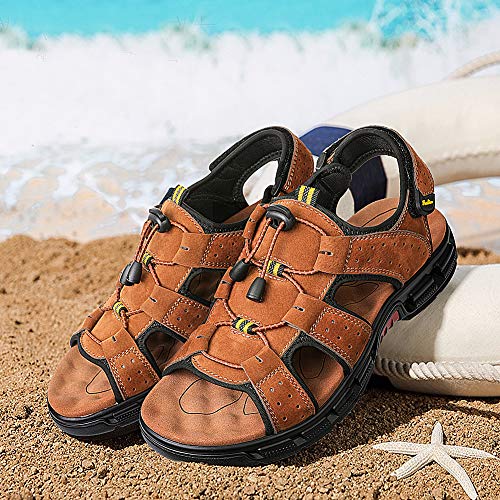 gracosy Sandalias Cuero Deportivas para Hombre Verano Exterior con Punta Abierta Sandalias de Playa Zapatillas de Montaña Senderismo, Amarillo Marron, 40 EU