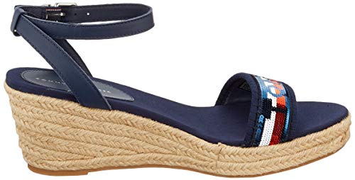 Tommy Hilfiger Tommy Sequins Mid Wedge Sandal, Chanclas Mujer, Azul (Sport Navy Db9), 38 EU