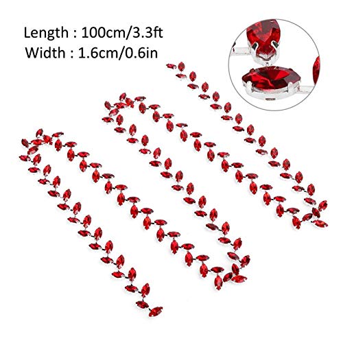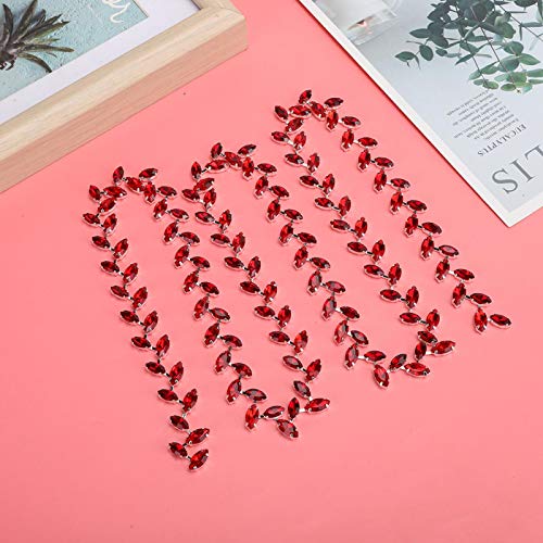 Oumefar 1,6 cm 1 m Cadenas de Diamantes de imitación en Forma de Hoja Apliques de Cristal para Costura DIY Ropa Zapatos Accesorios de decoración