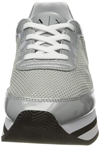 Armani Exchange Box Sole Sneakers, Zapatillas para Mujer, Plateado (Silver 00077), 36 EU