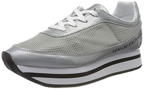 Armani Exchange Platform Sneakers, Zapatillas para Mujer, Plateado (Silver 00077), 41 EU