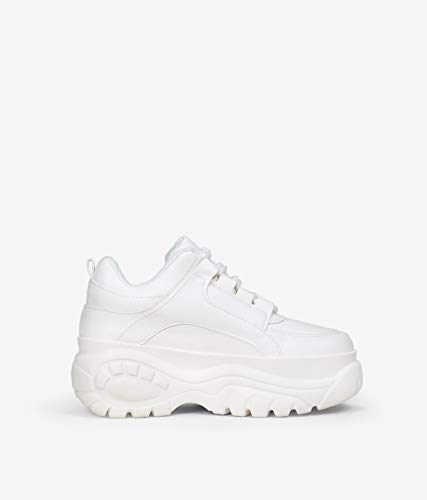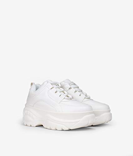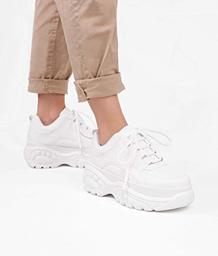 BOSANOVA Zapatillas con Plataforma Maxi de Piel Vegana para Mujer | Cierre con Cordones. Blanco 39