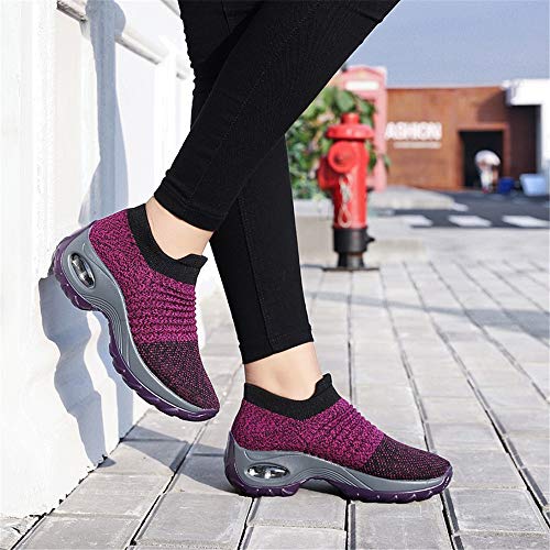 Zapatos Deporte Mujer Zapatillas Deportivas Correr Gimnasio Casual Zapatos para Caminar Mesh Running Transpirable Aumentar Más Altos Sneakers Negro Gris Morado Rojo 35-44 Morado 38