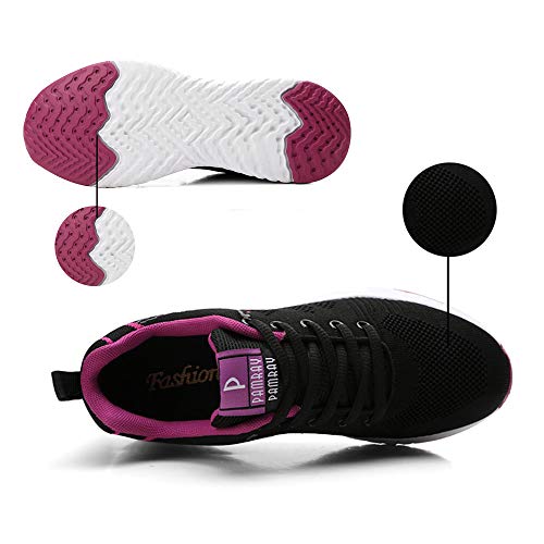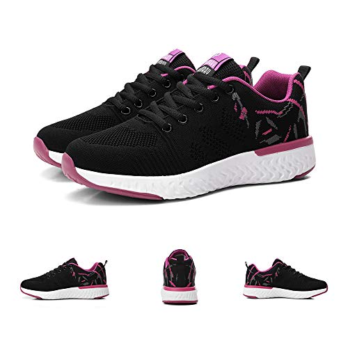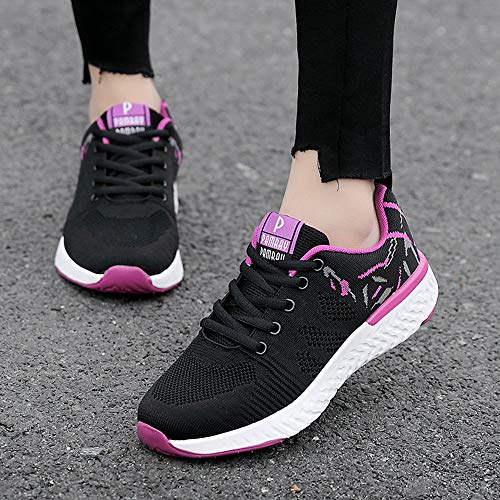 Mujeres Zapatos Deportivas Running Trekking Sneakers Cordones Ligero Respirable Mesh Shoes Fitness Rosa 37