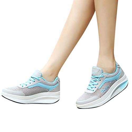 YWLINK Zapatillas De Deporte Transpirables De Malla Moda para Mujer Zapatos Ocasionales Zapatillas Estudiantes Fondo Grueso Fiesta De CumpleañOs Corriendo Ciclismo Antideslizante Regalo(Azul,37EU)