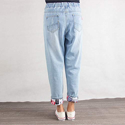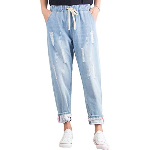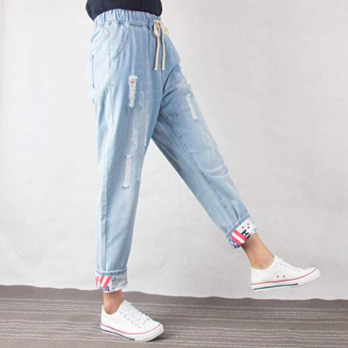 Luandge Pantalones Vaqueros Rasgados de Cintura Alta de Talla Grande para Mujer con cordón de Ocio Diario Cintura elÔstica cómodos Pantalones de Mezclilla Lavados 3XL