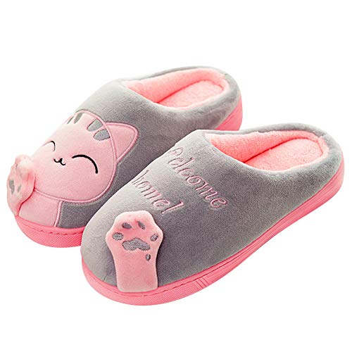 Mishansha Zapatillas De Estar por Casa para Mujer Suave Algodón Invierno Pantuflas Casa Cómodas Suave Slippers Gris Gr 37/38 EU (Tamaño del Fabricante 38/39EU)