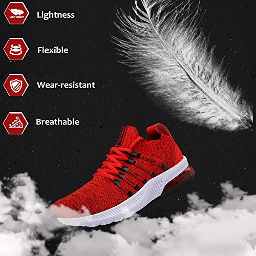 - Parte superior transpirable: estos zapatos de mujer hechos de tela elástica flyknit y malla transpirable absorbente de sudor con muchos agujeros densamente ventilados reducen el mal sabor y mantienen los pies secos y frescos.