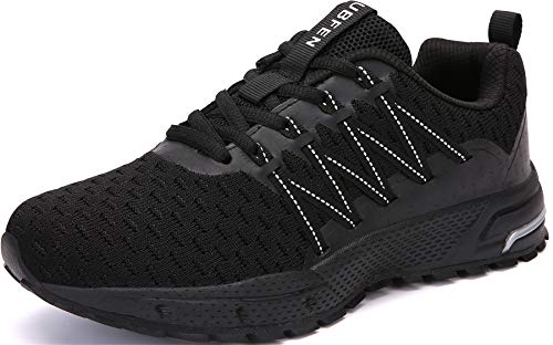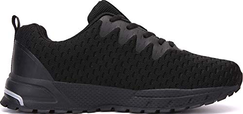 Zapatillas de Running para Hombre Casual Tenis Asfalto Zapatos Deporte Fitness Gym Correr Gimnasio Deportives Transpirables Seguridad Atlético Trekking Bambas Plataform Sneakers Negro 44 EU