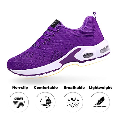 Zapatillas Deportivas de Mujer Air Cordones Zapatillas de Running Fitness Sneakers 4cm Púrpura-1 39